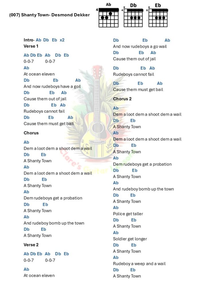 007 Shanty Town by Desmond Dekker is a ska/reggae classic and is in the key of Ab.