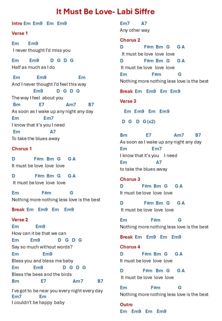 Welcome to my guitar lesson and chord sheet of It Must Be Love by Labi Siffre. It Must Be Love was released in 1971 and is from his 1972 album Crying Laughing Loving Lying. The song has the chords Em, Em9, D, G, Bm, E7, Em7, B7, A7 and F#m.